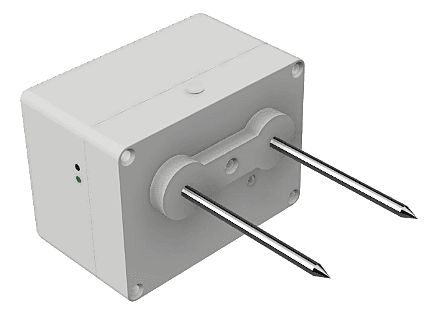 Compact wireless reader for measuring water content (WME), temperature, and humidity.